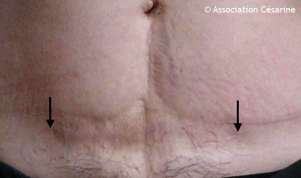 La cicatrice horizontale juste au-dessus est celle d'une plastie abdominale, et la cicatrice verticale correspond à une autre opération.